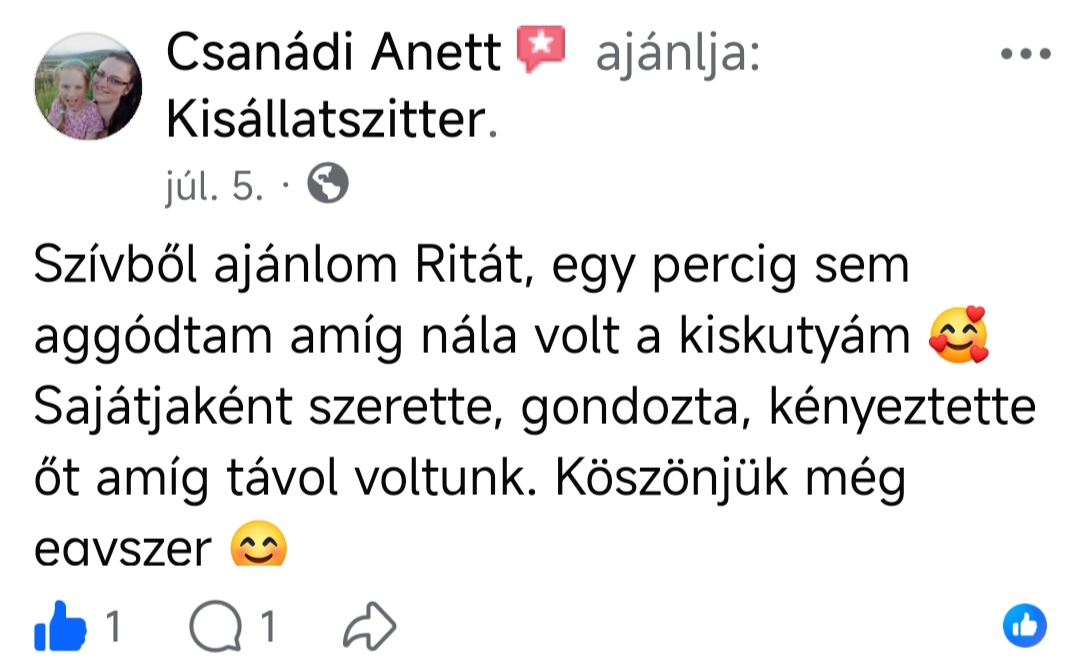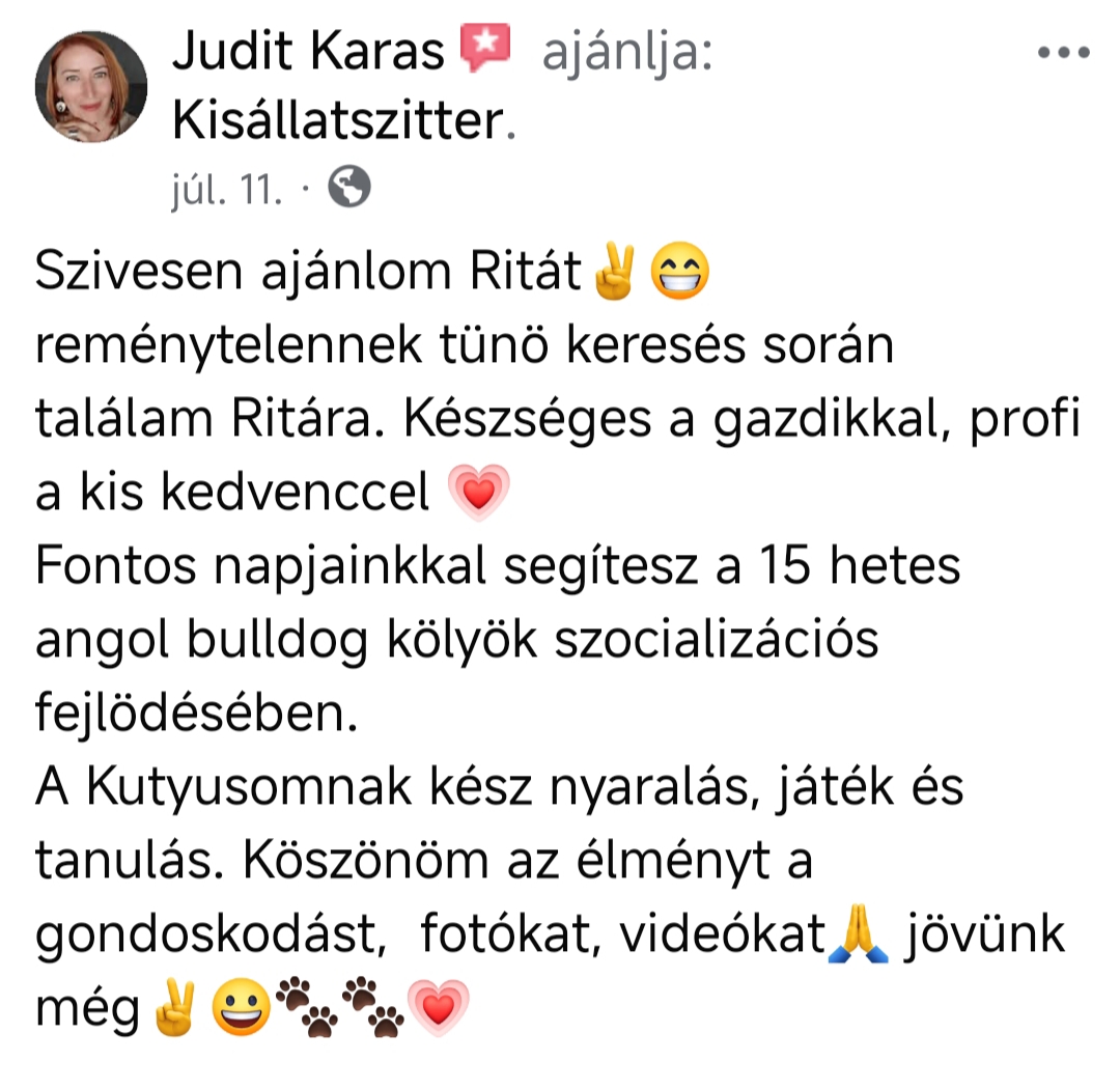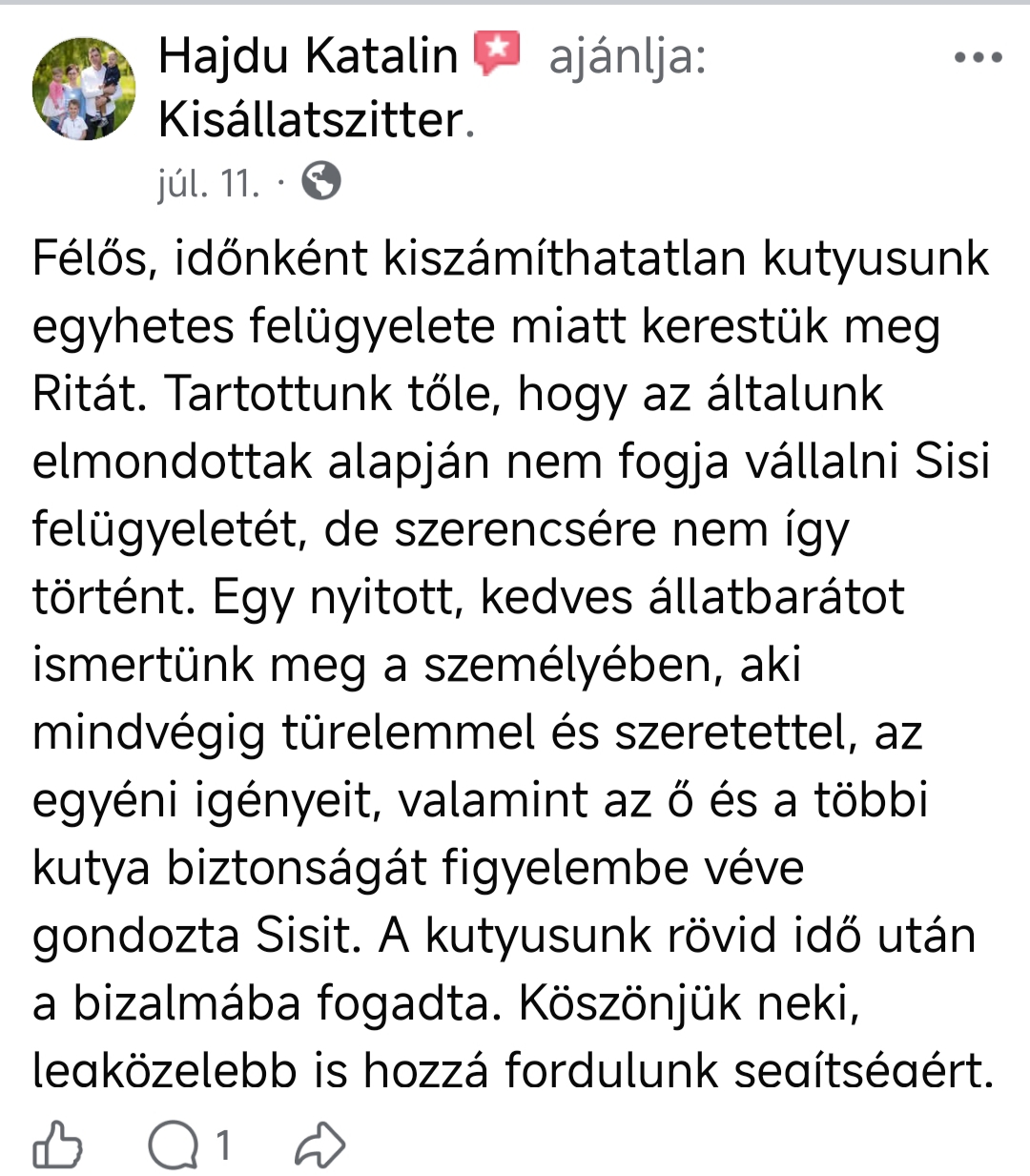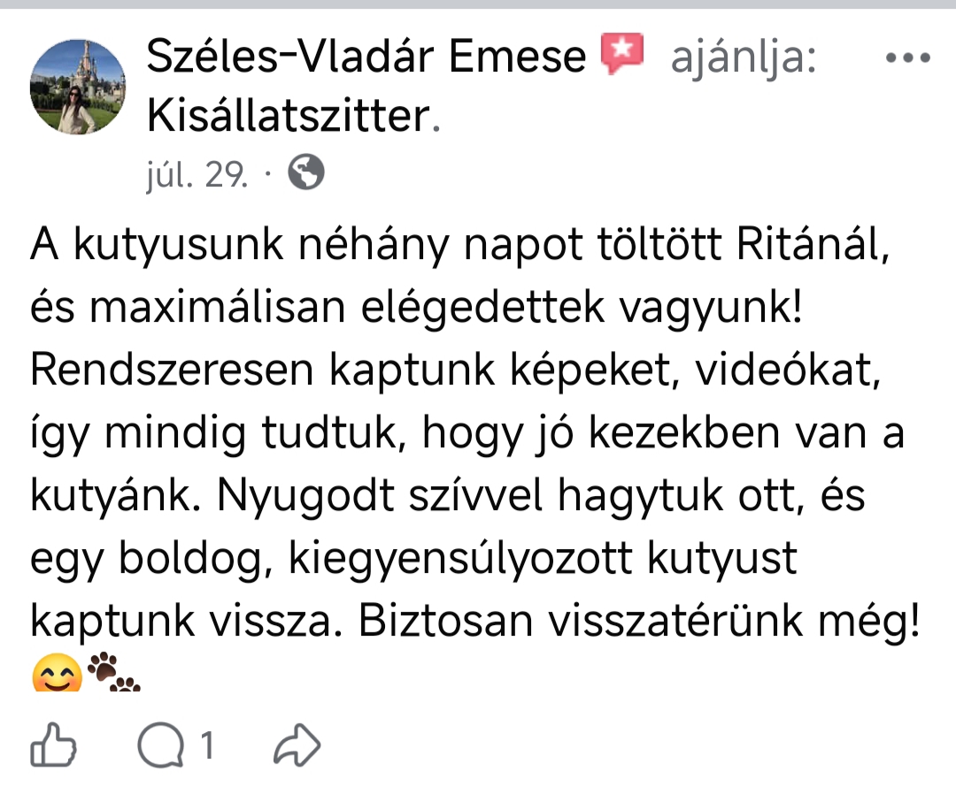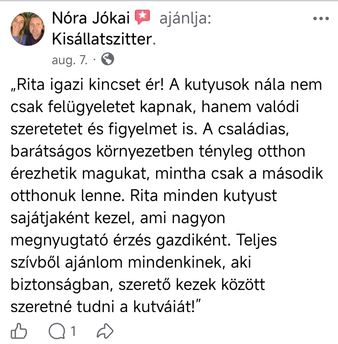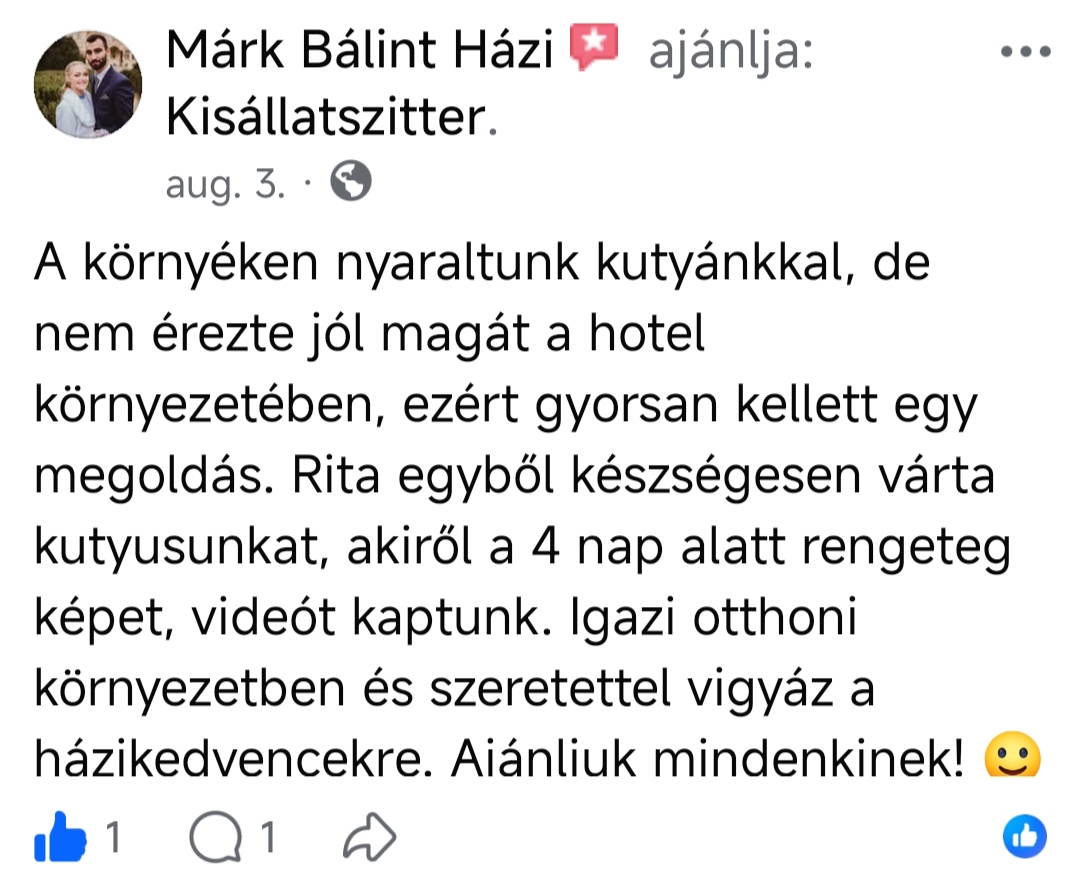 Annyira megnyugtató volt nálatok hagyni Zarust! Ma is indulni akart velünk kocsival😅 Jókedvűen hoztuk haza,a legnagyobb öröm volt nézni,hogy Szuper helyen volt❤️ P. Rita